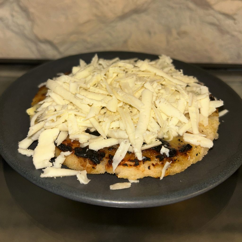 Carne de pollo, guiso de la casa, queso gratinado, aguacate y maíz dulce