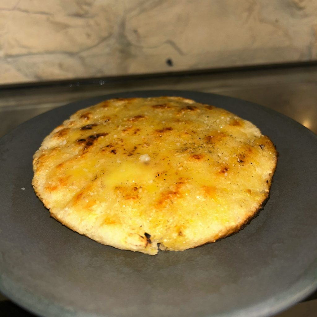 Torrezno, queso gratinado y aguacate