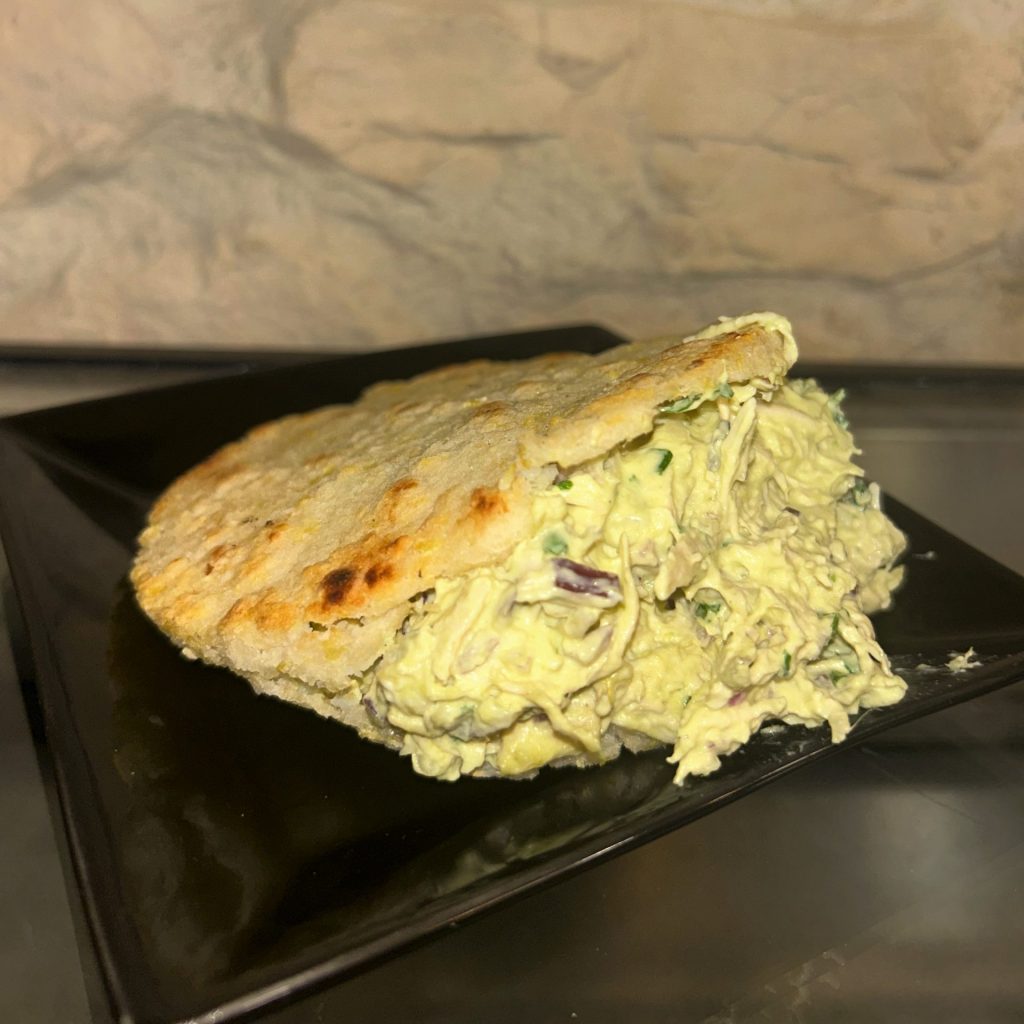 Pollo desmechado, aguacate, cebolla, ajo, mahonesa, aceite de oliva y pimienta negra